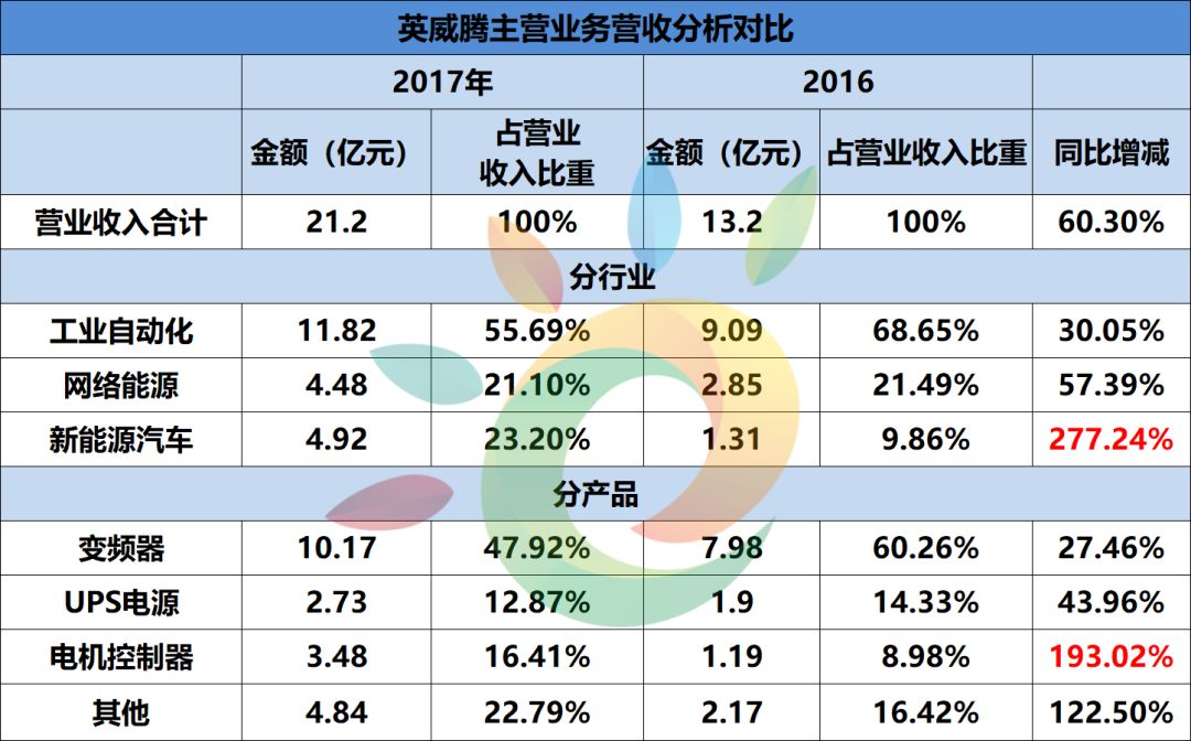 3月30日最新公布的2017年年报显示,其营业收入21.2亿元,同比增长60.3%;归属于上市公司股东的净利润2.26亿元,同比增长231.81%。基本每股收益0.3元。公司最新分配方案为每10股派发股息人民币1.50元,股息率1.6%。报告期内,除了工业自动化、网络能源业务实现较高增长,新能源汽车业务表现出彩,与2016年同比增长277.24%。